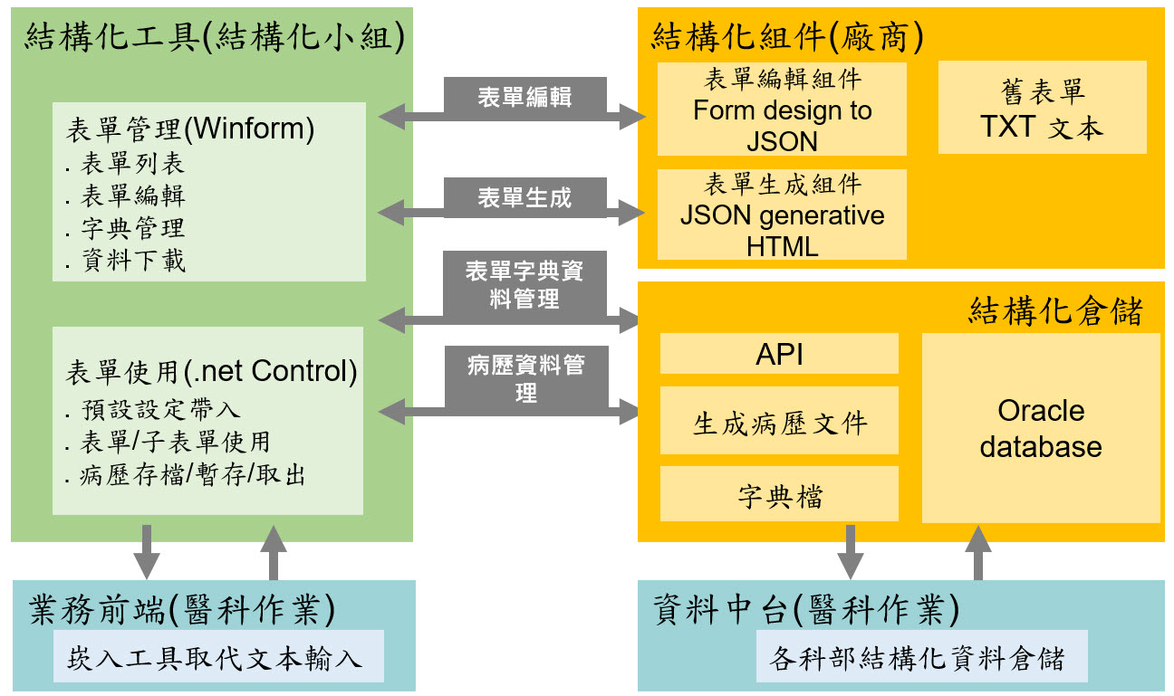 因應智慧醫療發展趨勢，鼓勵以 AI 結構化病歷範本 逐步替代自由文本病歷記錄方式，在醫療作業流程中，表單可以是內嵌單純的文字輸入框，也可以是多控制項協助半自動化病歷範本填寫，表單可依各科專業需求設計。表單控制項可連結字典定義，通過資料治理以及結構化倉儲管理，可作為研究管理數據來源，建置即時輔助醫師診療決策工具，是醫療資訊轉型的基礎建設之一!&#x20;