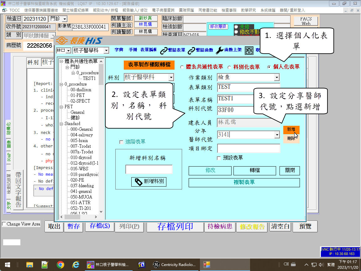 若表單僅供個人使用，可依下面設定，選擇個人化表單，填入擬分享表單給醫師的代號設定。